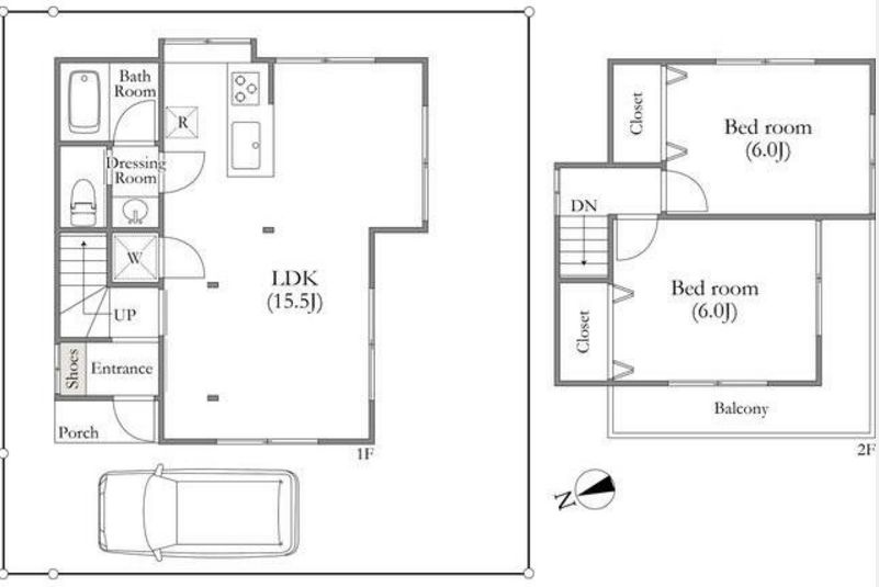 2LDK/ LDK 15.5帖 1室/洋室 6.0帖 2室 |